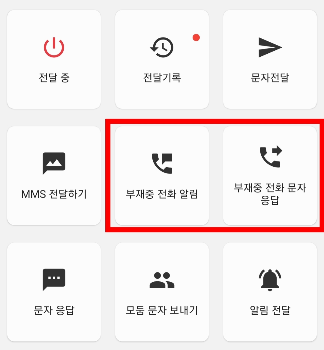 이번에는 부재중 전화 문자 응답 메뉴를 설정해서 못 받은 전화가 오면 전화 건 상대방에게 자동으로 지정한 문자가 가도록 하는 기능을 알아보겠습니다.