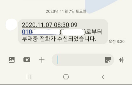 위와 같이 지정된 전화번호로 부재중 알림 문자가 온 걸 볼 수 있습니다.