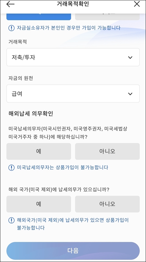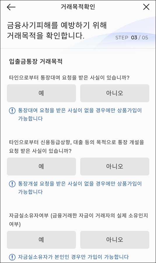 신분증 확인까지 완료되었다면 두드림통장 개설에 대한 약관 확인 및 거래목적 확인 절차를 간단히 거쳐주세요.