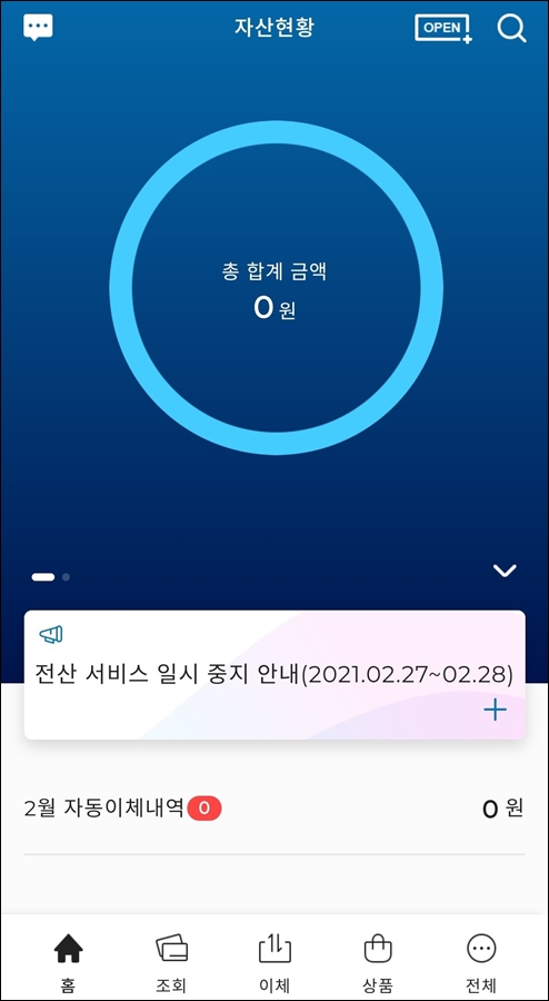 드디어 아래와 같이 스마트폰에서 SC제일은행 입출금계좌, 두드림통장을 완전히 사용할 수 있게 되었습니다. 당연히 금액은 "0원"으로 시작하죠!
