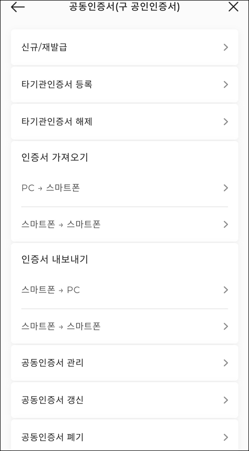 공동인증서 메뉴를 선택해서 들어가 봅니다.