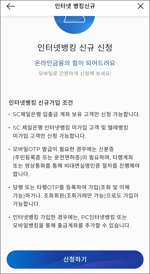 SC제일은행 인터넷뱅킹, 공동 인증서, 모바일뱅킹까지 비대면 신청하기