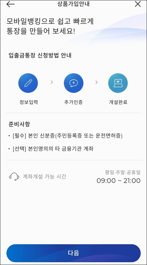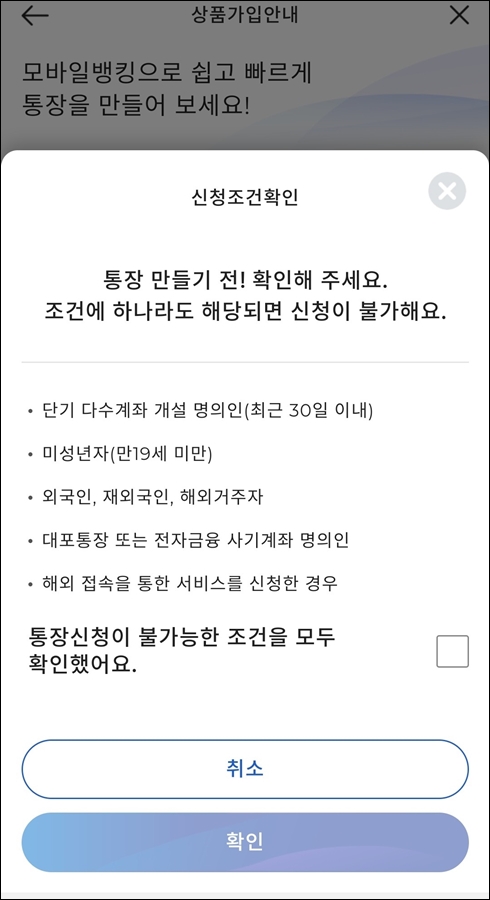 두드림통장을 만들때와 마찬가지로 본인 확인을 위한 신분증이 필요하니 미리 챙겨두시고요. 위와 같이 신청 조건을 확인하신 후 진행해 주세요.