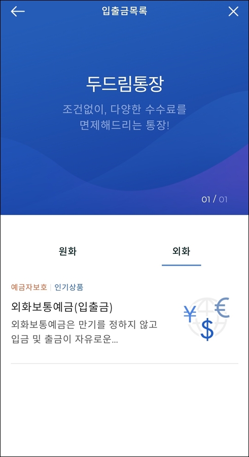 두드림통장을 만드셨다면 외화통장을 개설해 봅니다.