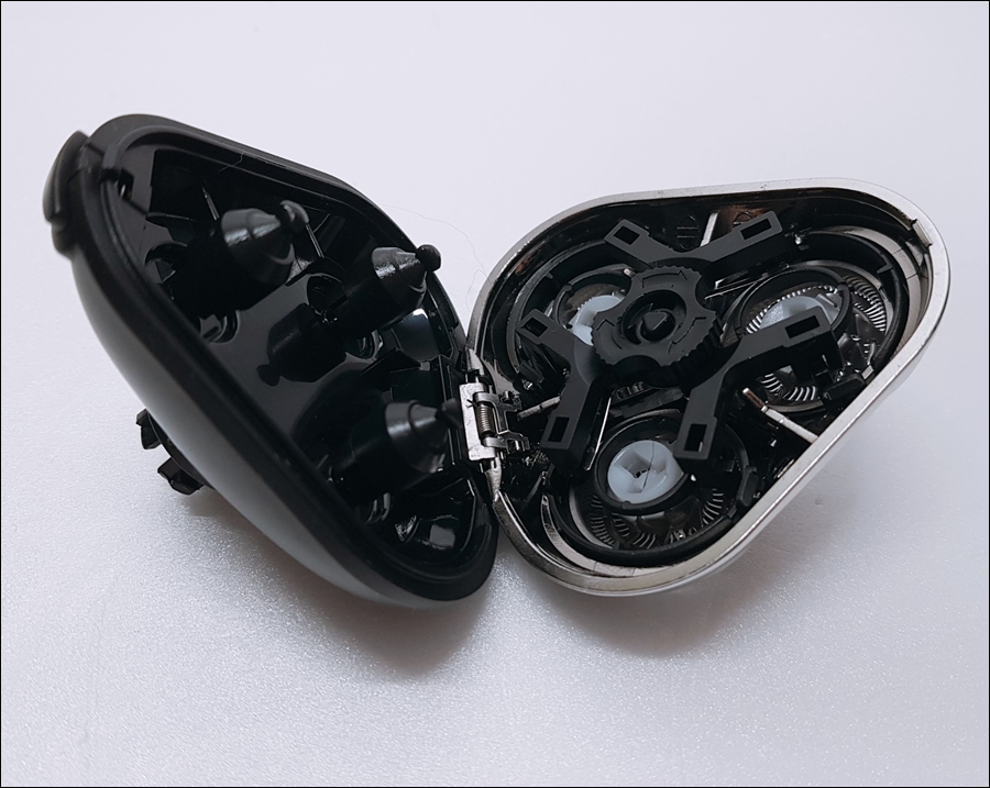 헤드 부분은 위와 같이 버튼 부분이 있어 쉽게 오픈이 가능합니다. 면도날 또한 하나씩 분리가 가능하니 세척을 꼼꼼하게 할 수 있습니다.