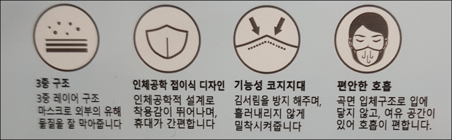 그래도 바이러스 전파 방지를 위해 KF80, KF94 제품을 여럿 사용하면서 대부분의 마스크는 다소 불편했습니다.