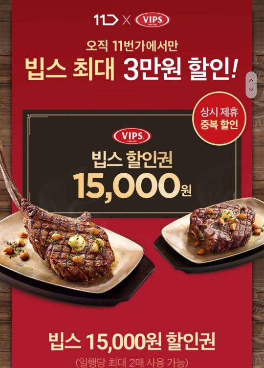 [11번가] [기프티콘] 빕스 15,000원 할인권