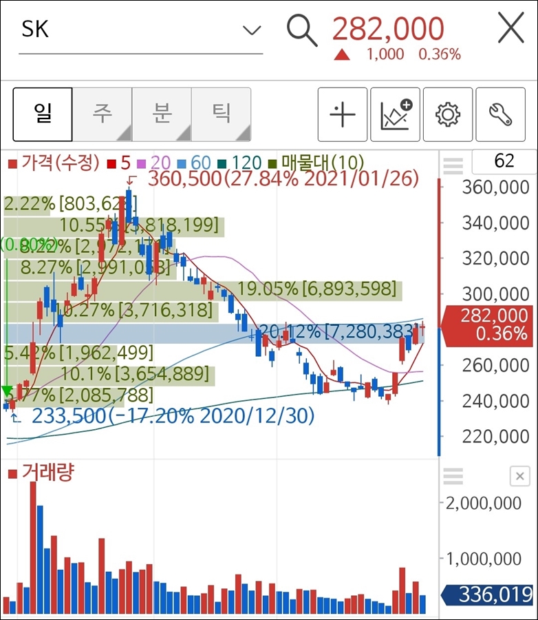 그럼 현재 SK(주)의 주가 동향을 살펴볼까요?