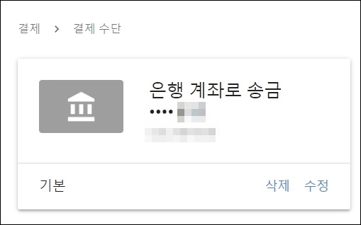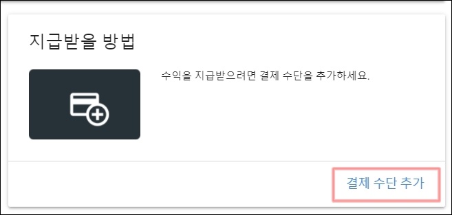 그럼 위와 같이 지급받을 방법을 추가하라고 합니다. 우측의 결제 수단 추가를 통해 상세 설정 메뉴로 진입해 봅니다.