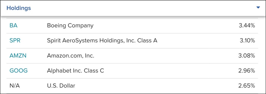 위에서 보듯이 성장주(Growth)에 투자를 한다고 되어 있으며 특정분야로는 우주 및 방산( AEROSPACE, DEFENCE)으로 되어 있습니다.