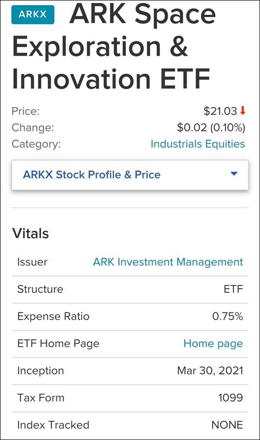 ARKX의 운용 수수료는 0.75%라고 하니 참고하시면 좋을 듯합니다.