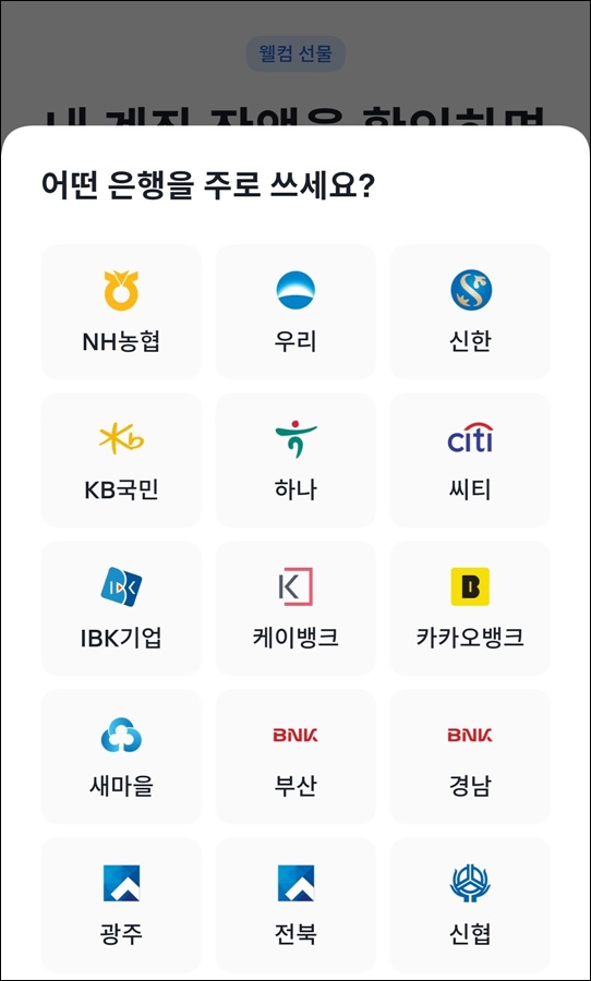우선 조회 연결을 하고자 하는 은행을 선택해봅니다. 위와 같이 여러 은행 중에서 본인이 가지고 계신 은행을 선택하시면 되겠습니다.