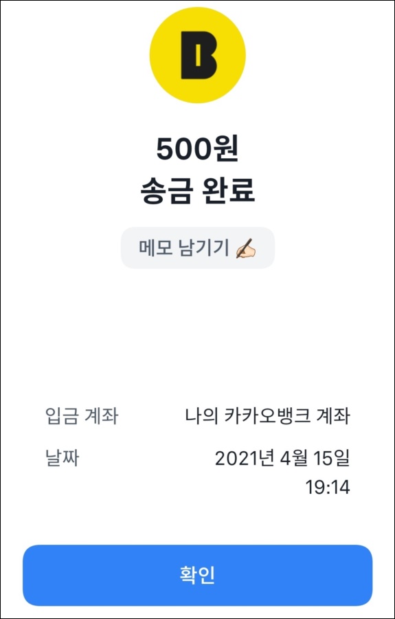 위와 같이 500원이 송금 완료된 것도 확인이 되었습니다.