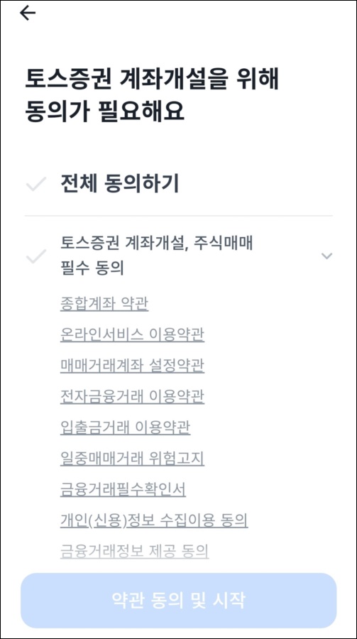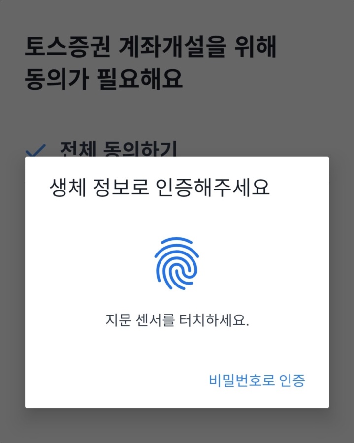 간단하기 계좌개설 동의를 진행해주고요. 비밀번호나 지문 인식으로 인증을 거쳐서 다음 단계로 진입합니다.