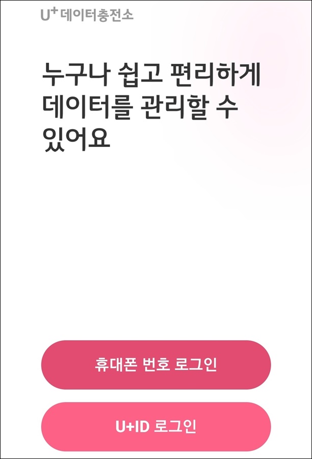 U+ 데이터 충전소 앱을 설치 완료하셨다면 아래와 같이 시작을 하도록 합니다.