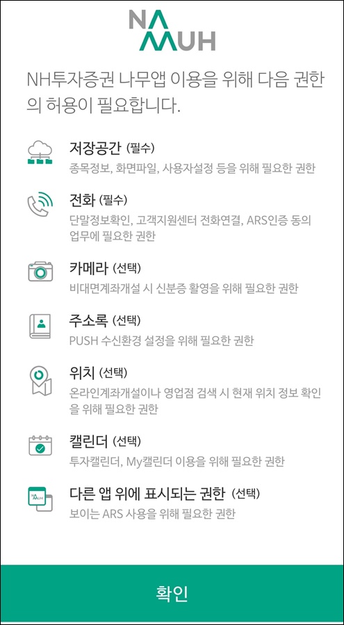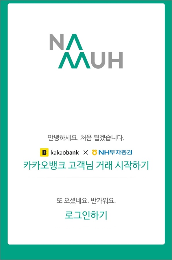 타 증권사 일부는 직접 사용하는 증권앱이랑 계좌 개설 앱이 따로 있는데, NH투자증권의 나무 앱은 통합되어 편리한 측면이 있습니다.
