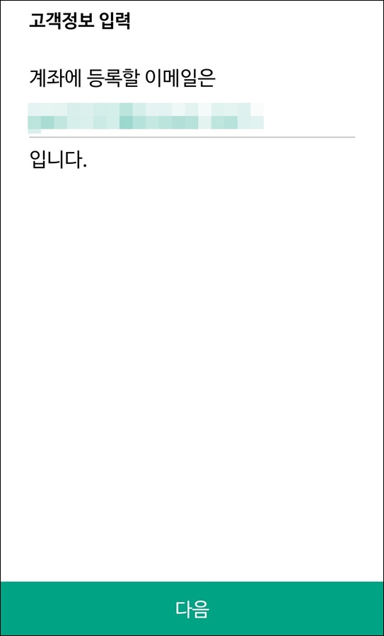 제일 우선 NH투자 증권 계좌에 연결할 이메일을 선택합니다. 기본적으로 카카오 뱅크에 등록된 이메일을 가져오니 따로 입력할 필요 없이 확인 후 다음 단계로 넘어가면 되겠습니다.