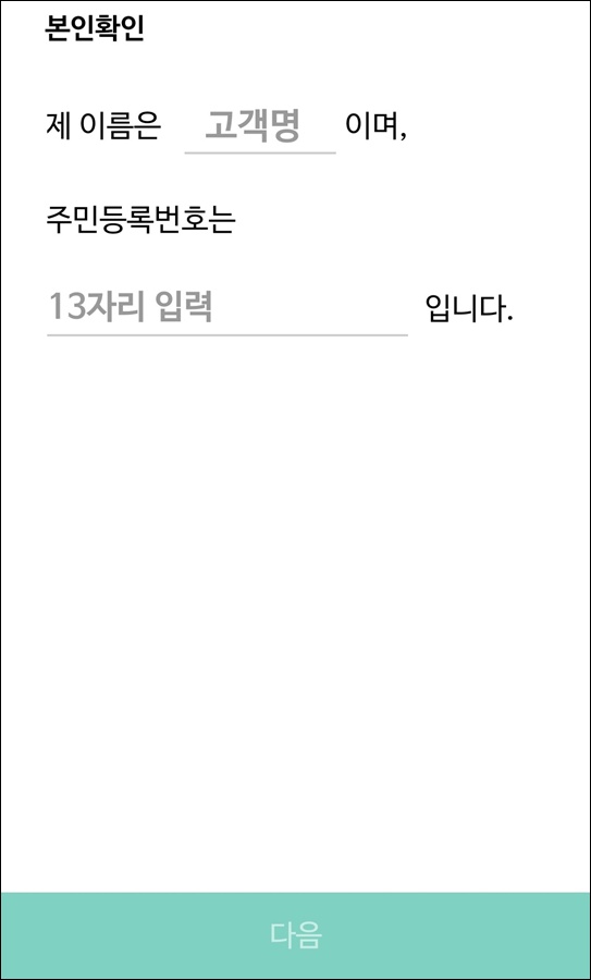 이제 고객 정보, 즉, 개인정보에 대해서 기입을 할 차례입니다.