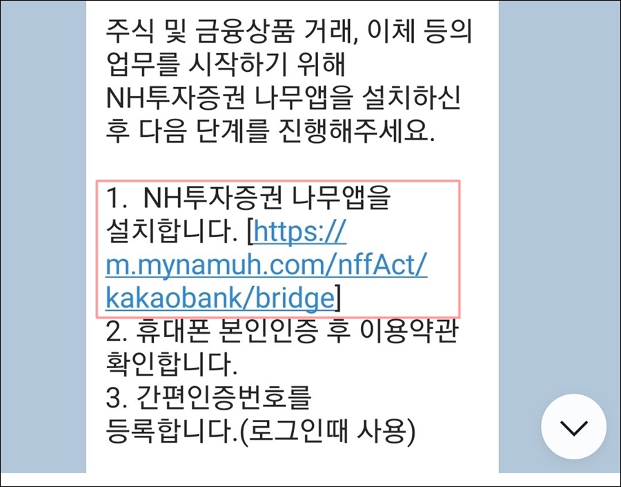 지난 시간에 NH증권계좌 개설이 완료되었다면 아래와 같이 카카오톡으로 계좌 개설 안내 문자가 나옵니다.