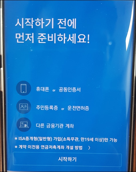 먼저 개설 계좌 중에서 ISA 계좌 개설을 간단히 진행하게 됩니다. 주식투자도 가능한 중개형 ISA라고 하니 일단 개설해놓고 나중이라도 사용하면 좋을 듯합니다.