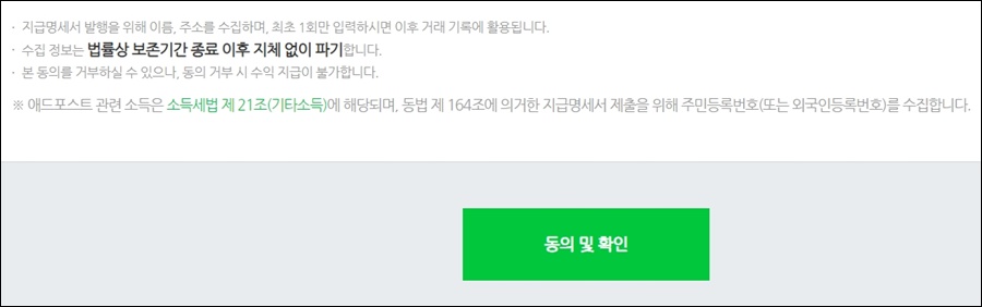 개인정보 동의를 하지 않으면 수익 지급이 안된다고 하니, 이 부분은 수익을 받기위해 꼭 필요하겠죠!