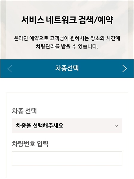 위와 같이 서비스 지점을 선택해 준 후 "정비예약" 메뉴를 선택해서 들어가 보도록 합니다.