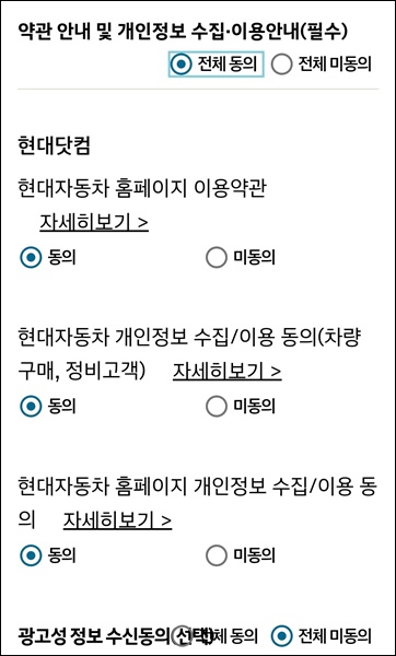 위와 같이 현대닷컴 이용과 관련해서 이용약관 동의를 진행해주면 서비스 가입은 모두 완료가 됩니다.