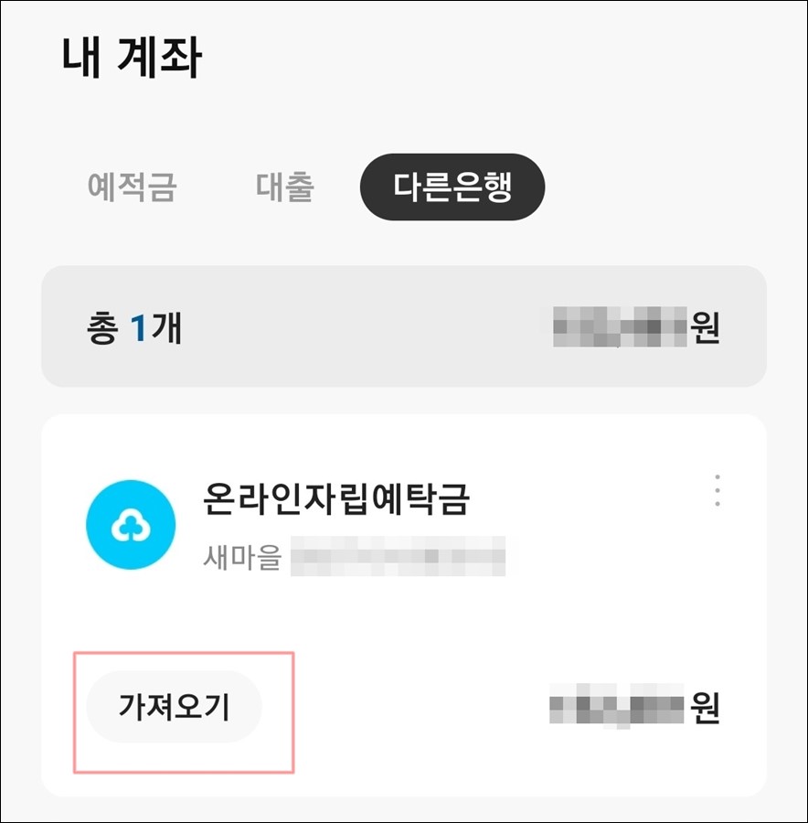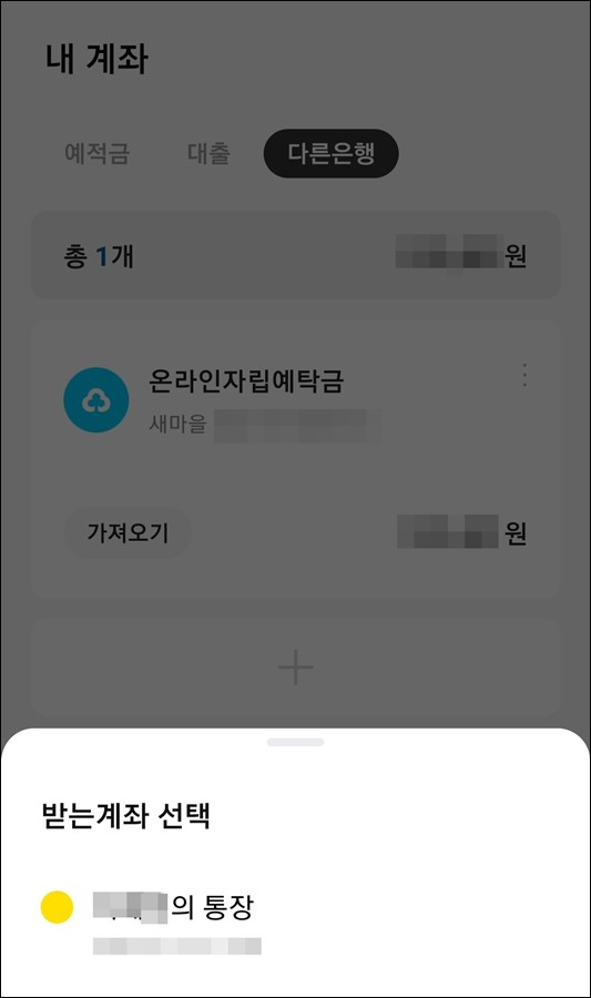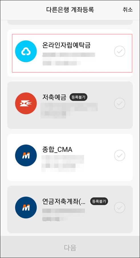이제 다른 은행들의 계좌가 보이기 시작합니다.