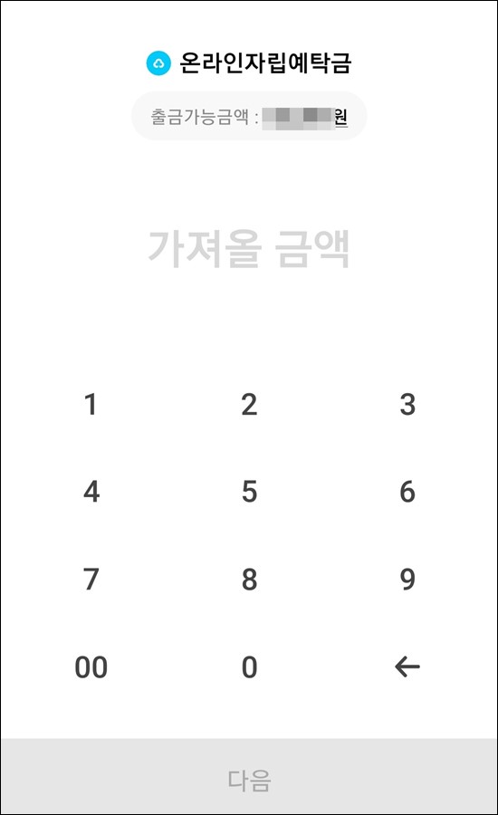 그다음 가져올 금액을 키패드에서 입력을 해주시면 됩니다.