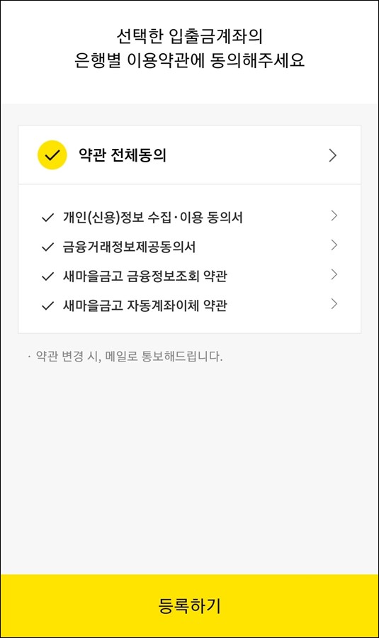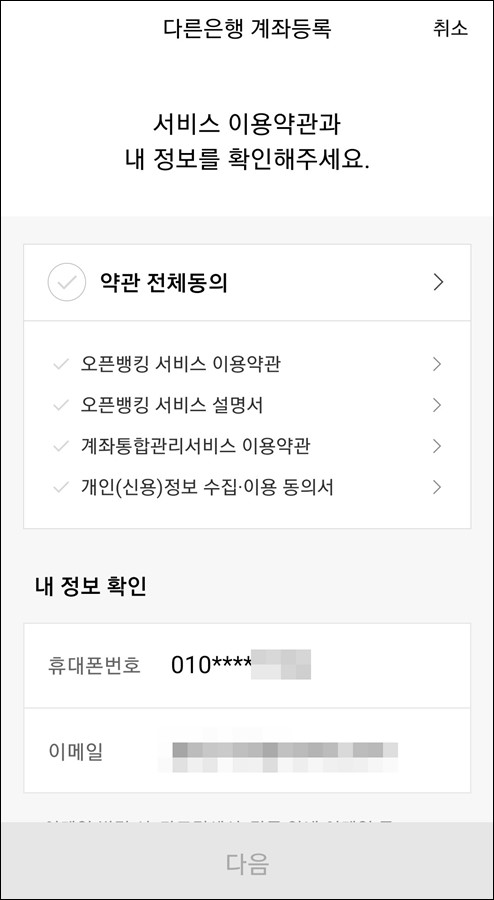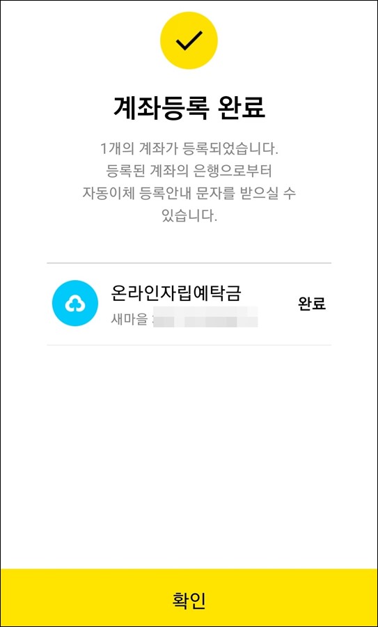 약관을 동의해주시고, 등록하기를 진행하면 아래와 같이 간단하게 계좌 등록이 완료되었습니다.