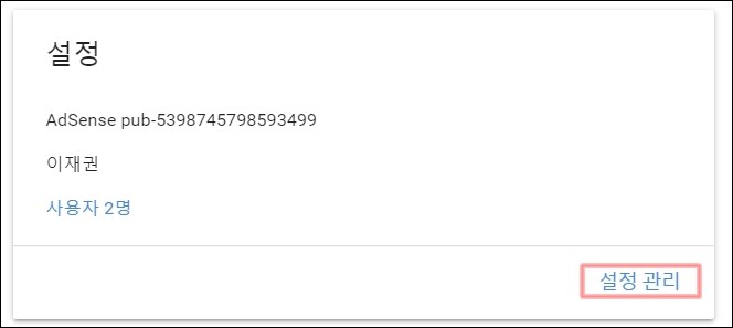 오른쪽에서 "설정" 메뉴를 찾아주시고, "설정 관리"로 진입해 봅니다.