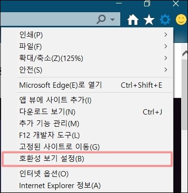 여러 가지 메뉴 중에 호환성 보기 설정을 선택해주도록 합니다.