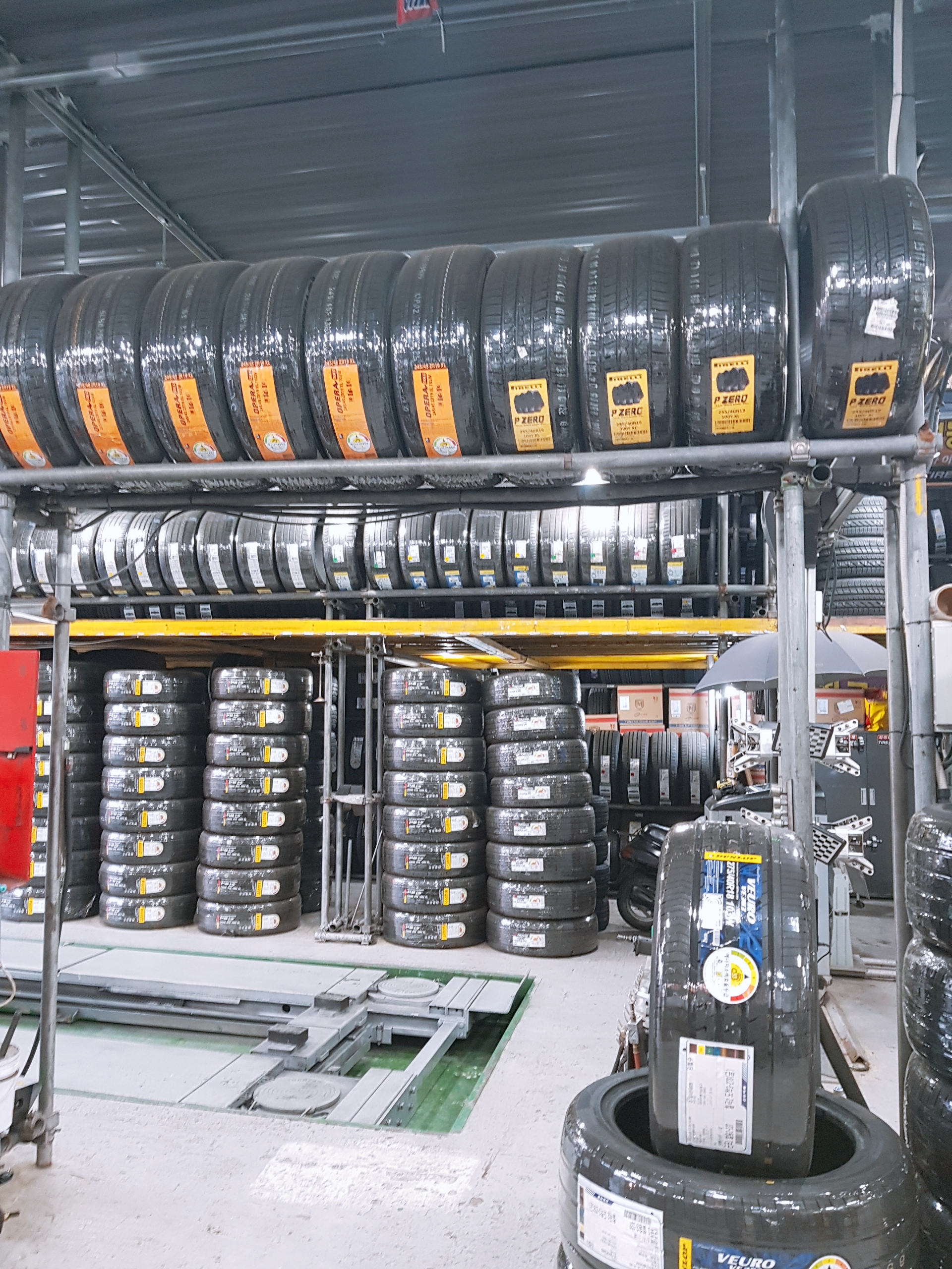 한 창고 가득 타이어가 자리하고 있네요. 저 타이어는 언제 다 사용이 가능한 걸까요?