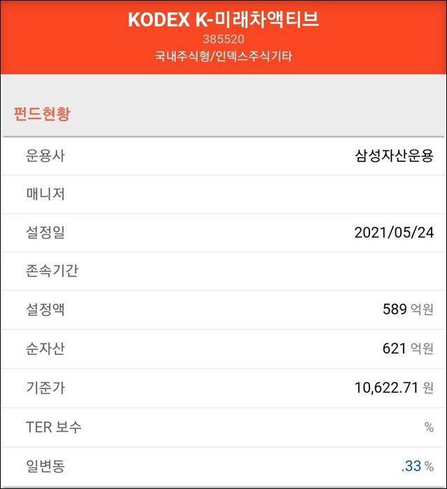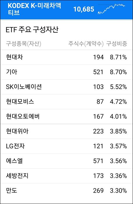 위와 같이 기본적으로 이 ETF는 FnGuide K-미래 차지수를 추종하는 것으로 설계되어 있습니다.