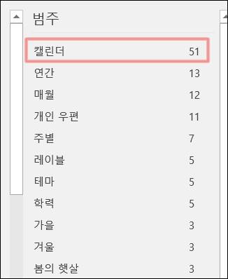 여기서 원하는 양식을 검색할 수 있습니다. 캘린더뿐만이 아니라 우편이나 목록, 차트 등등도 다양하니 만들어 볼 수 있습니다.