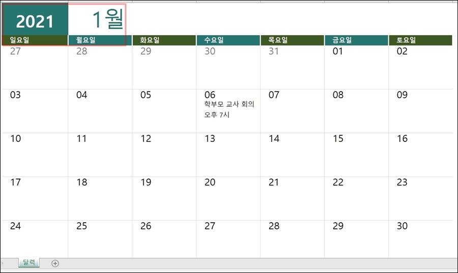 다른 달의 달력을 보고 싶으면 아래에 있는 탭을 차례로 선택하면서 확인하면 되겠습니다.