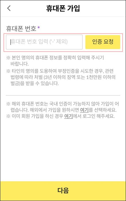 휴대폰 번호로 가입하실 분들은 위와 같이 화면을 따라 해 주시면 될 거 같습니다.