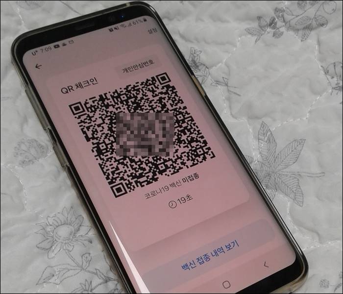 바로 위와 같은 코드가 바로 생성된 것을 볼 수 있습니다. 뿐만 아니라 코로나19 백신 접종 여부도 본 화면에서 같이 확인이 가능하네요.