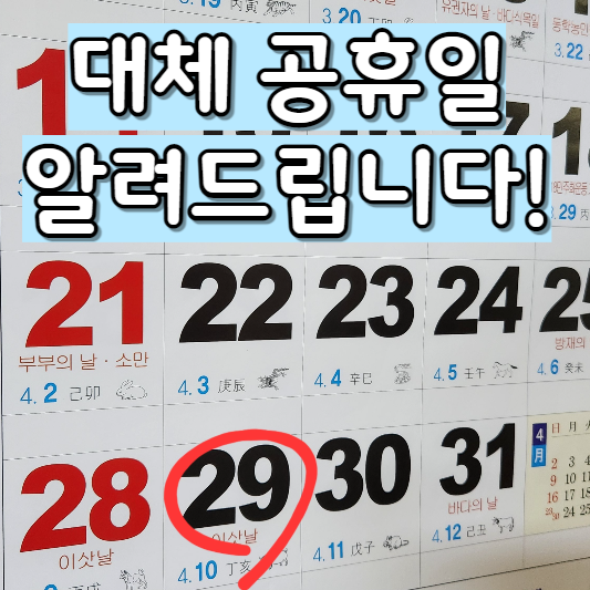 대체 공휴일은 공휴일에 관한 법률에 따라 지정되는 것으로 설, 추석, 어린이날 등등 이런 공휴일이 토요일 및 일요일, 그리고 다른 공휴일과 겹쳐지게되는 경우 이를 "대체공휴일"로 지정합니다.