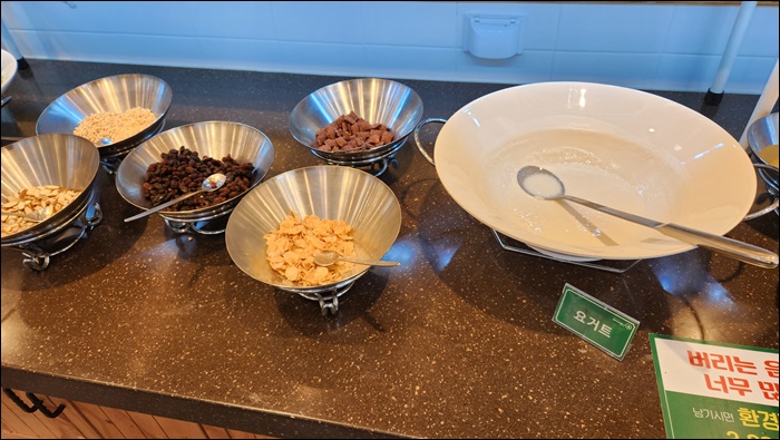 이뿐만이 아니라 후식도 잘 준비되어 있는데요. 요거트로 마무리해 주시면 끝이 되겠습니다.