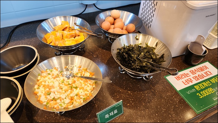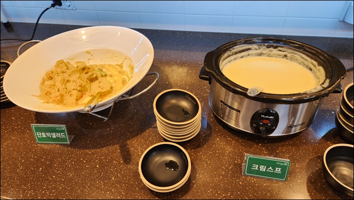 또한 아래와 같이 입맛을 돋구어주는 크림스프와 식사를 하고 나서 만들어 먹을 수 있는 죽 재료까지 준비되어 있어서 좋았습니다.