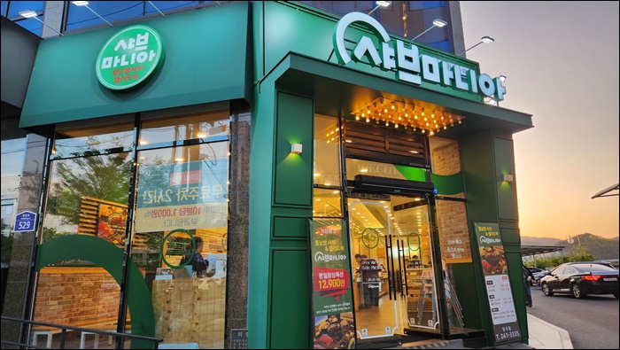 샤브 마니아 칠곡점 입구를 보면 아주 깔끔한 디자인이랍니다. 깨끗해 보이죠?