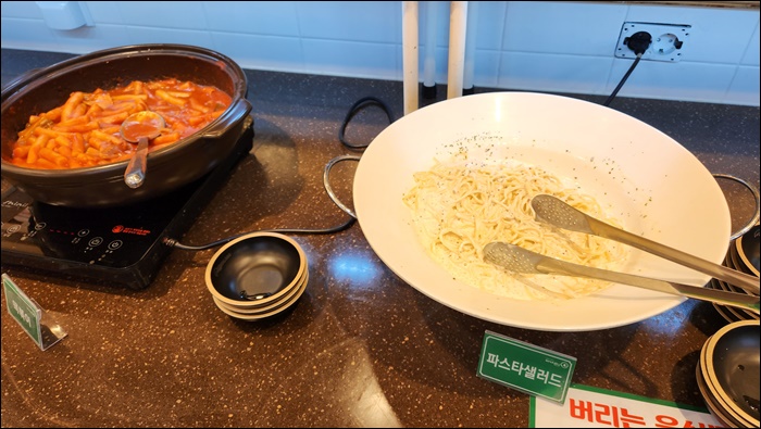 각종 샐러드부터 떡볶이, 만두, 어묵 등등 이것저것 먹다 보면 배가 불러온답니다. 하지만 맛있어서 멈출 수 없는 건 어쩔 수 없네요!
