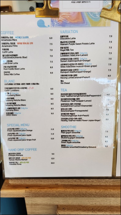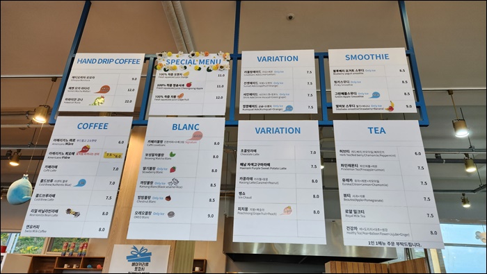 카페 메뉴는 아래 참고하시면 되겠습니다.