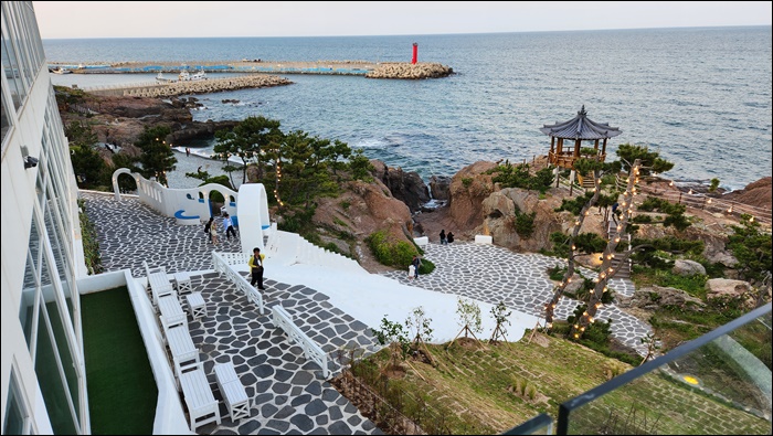 아래와 같이 유럽풍의 계단 디자인과 포토존들이 위치해 있었고, 바다 쪽으로 가면 정자와 함께 바다를 배경으로 사진을 찍을 수 있는 곳이 있어 사진 맛집이 아닐까 생각됩니다.