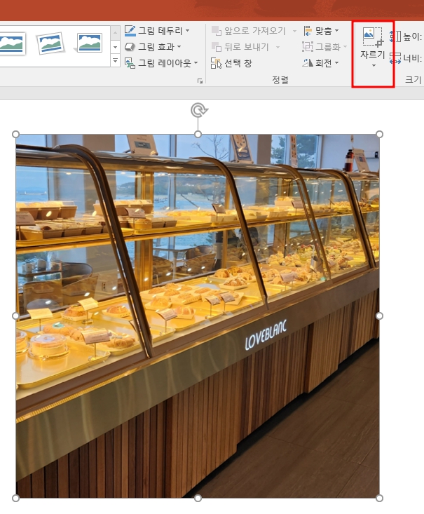 그중에서 오른쪽 편에 보면 자르기라고 메뉴가 있습니다.