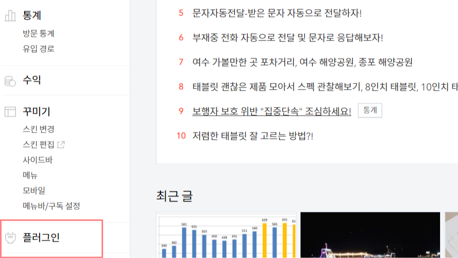 이럴 때 티스토리에서는 SNS와 연동할 수 있는 플러그인 메뉴를 활용해보시면 좋겠습니다.