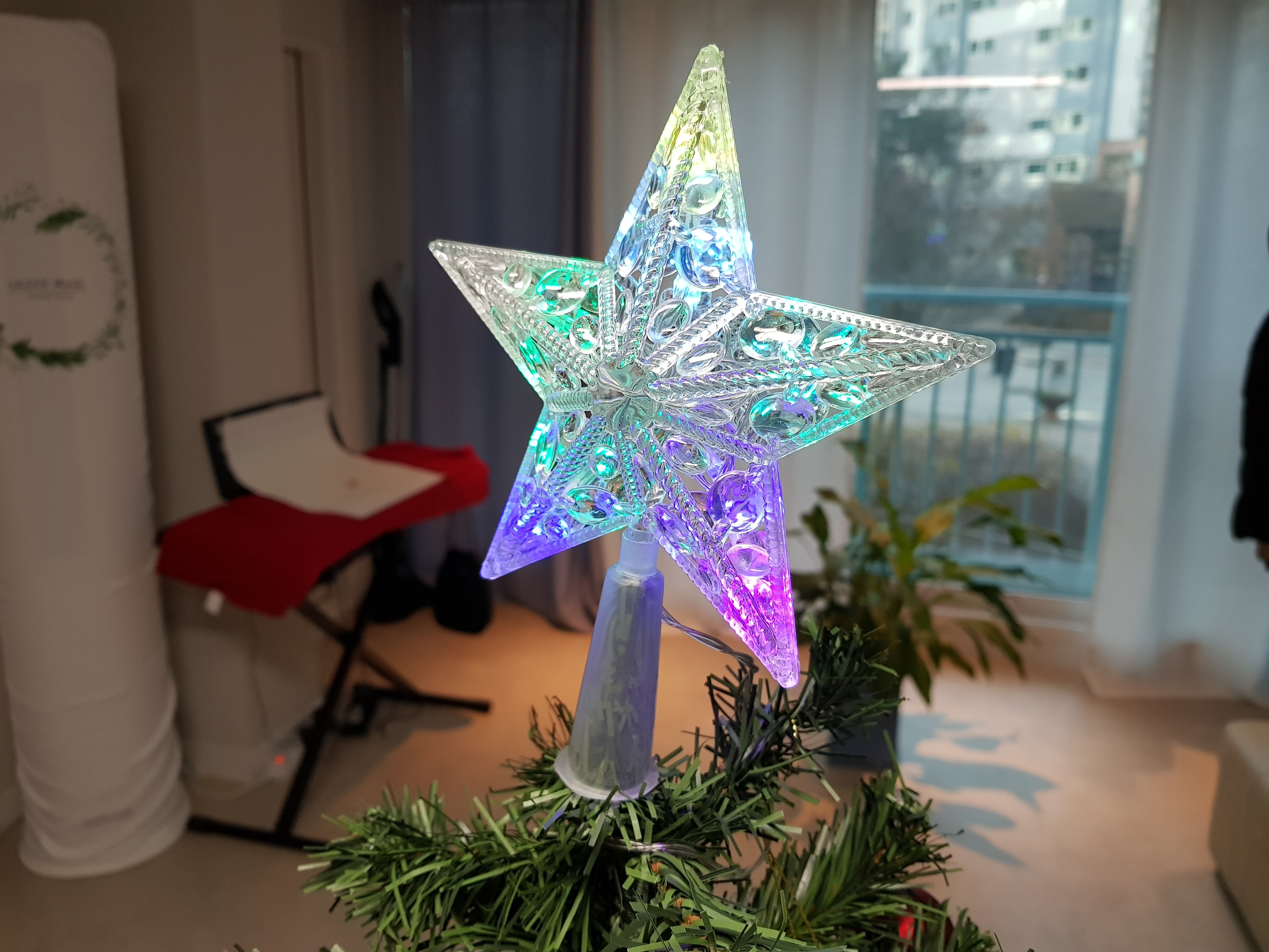 이 별 모양 장식도 다이소에서 샀죠! 건전지를 넣어서 하는 타입이라 콘센트에 따로 연결할 필요가 없어서 편리했습니다.