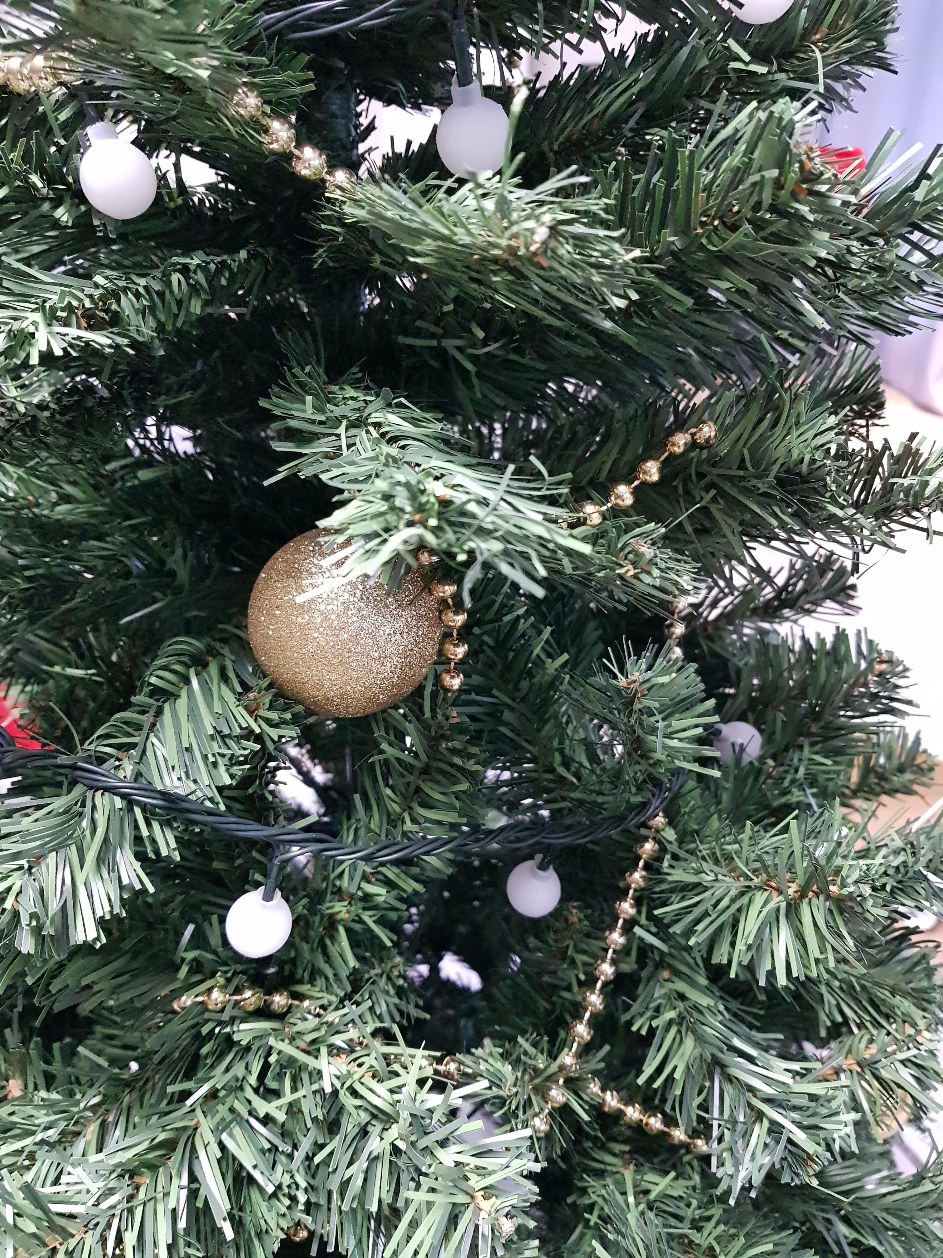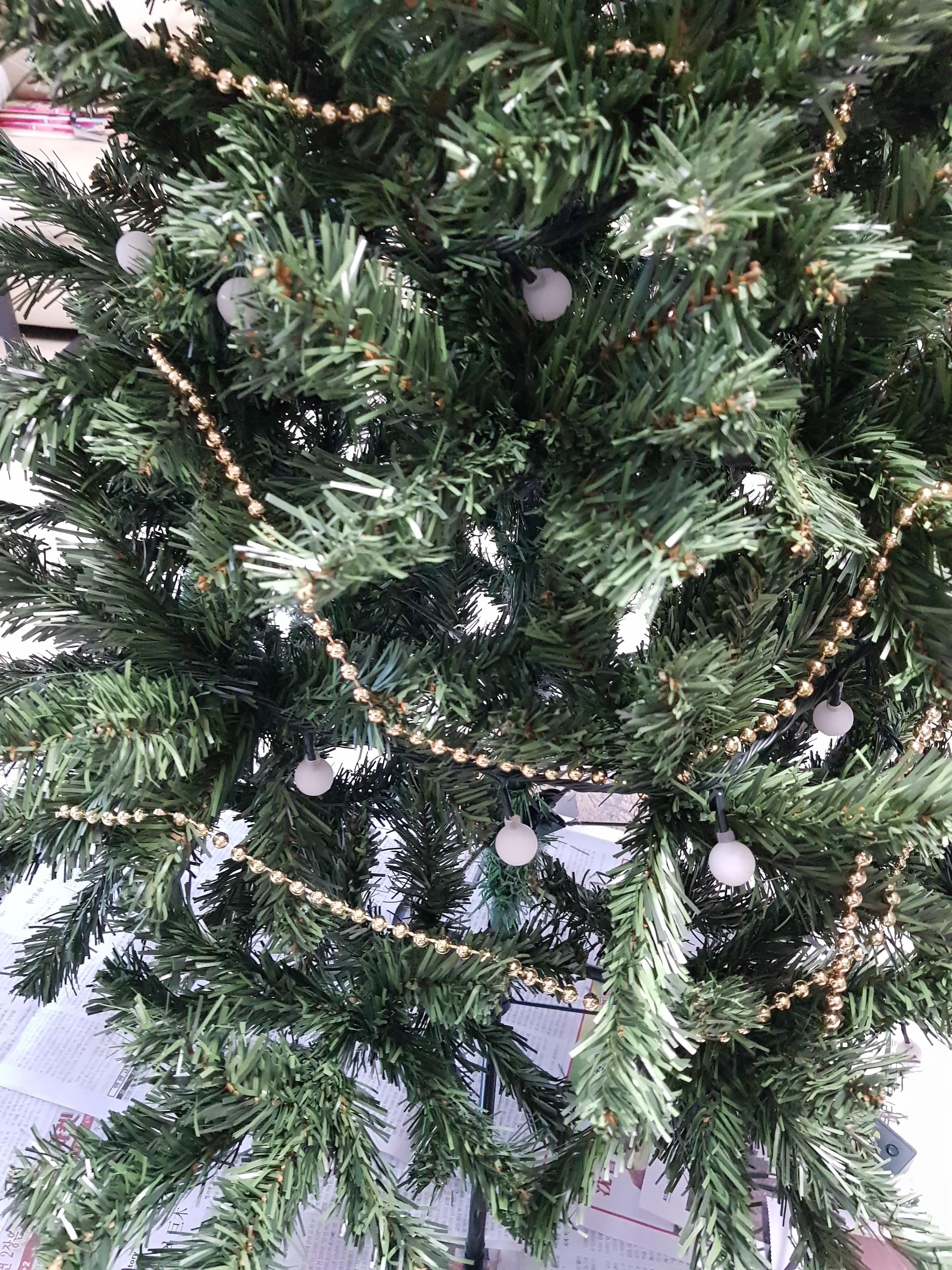 그리고 크리스마스트리의 핵심인 조명을 트리의 테두리를 따라 둘러줍니다. 조명은 길이를 넉넉하니 5m정도로 하면 150cm 트리에는 적당하게 맞는거 같아요.
