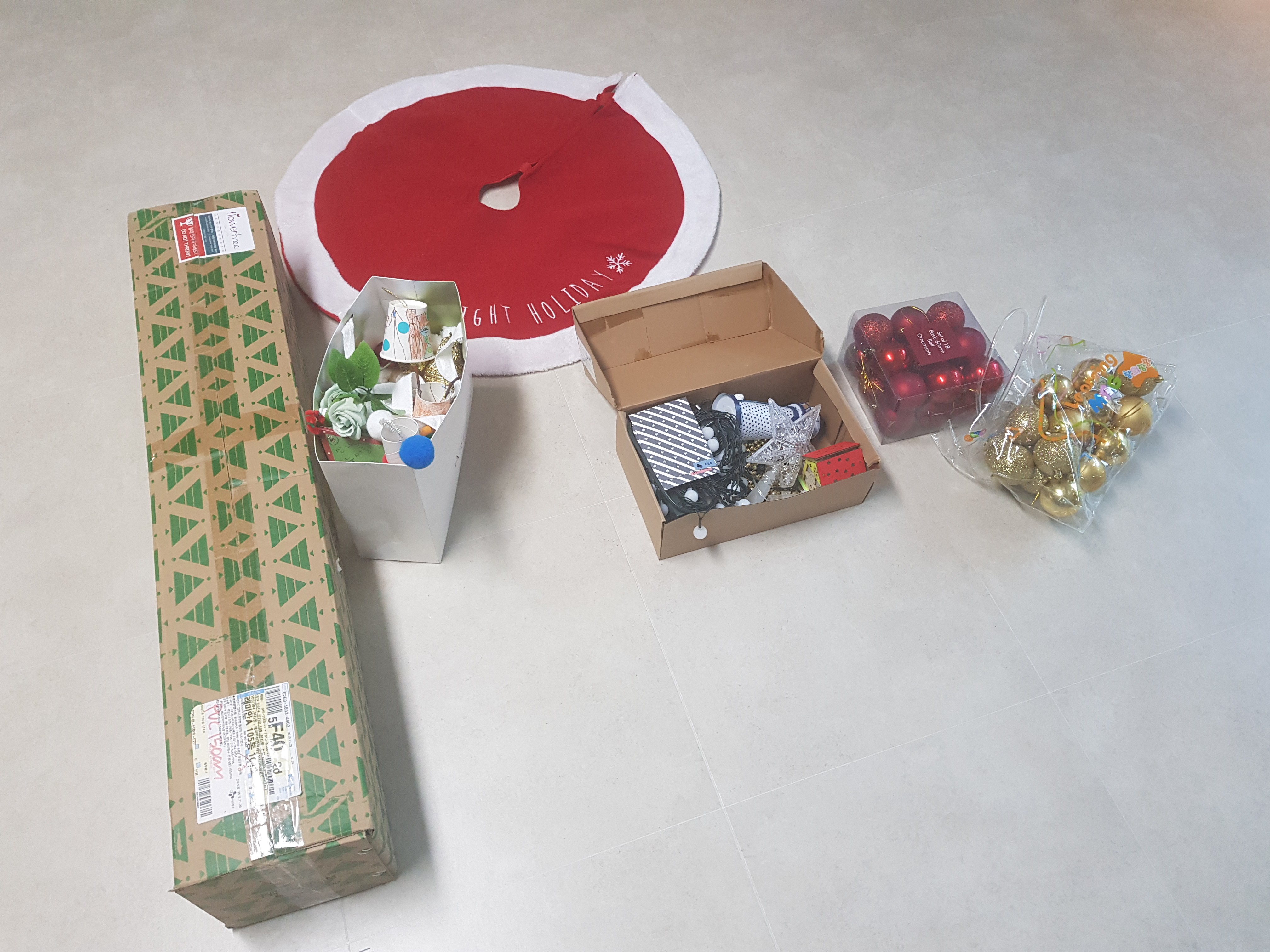 준비물을 일단 꺼내 주세요. 지난해에 구매한 트리 나무와 각종 장식품들을 창고에서 꺼내봅니다.